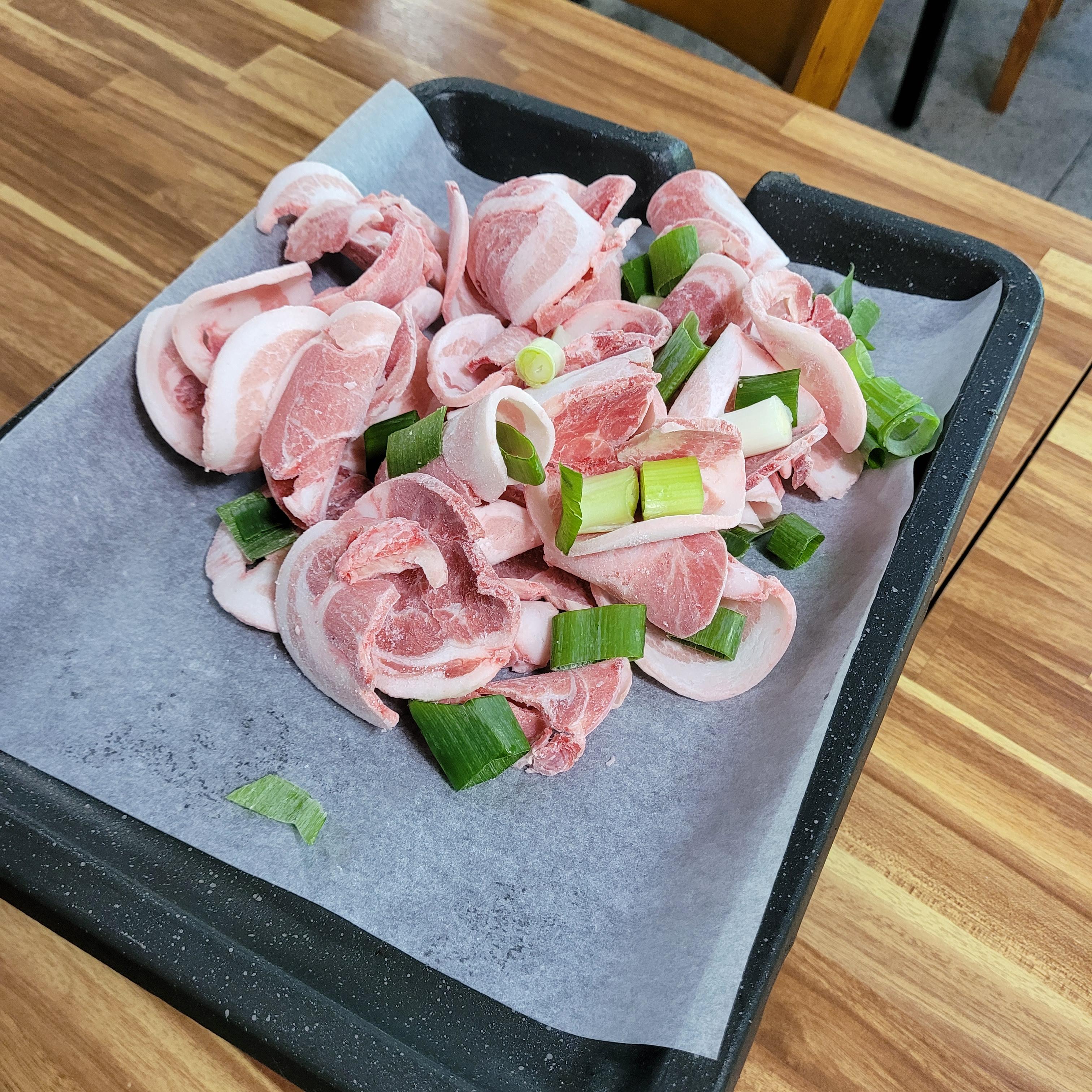 파와 함께 롤삼겹살이 나왔다 아마도 냉동인듯 보였으나 국내산이라 안심하고 먹었다